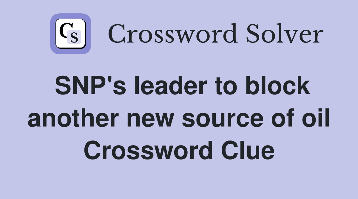 SNP #39 s leader to block another new source of oil Crossword Clue