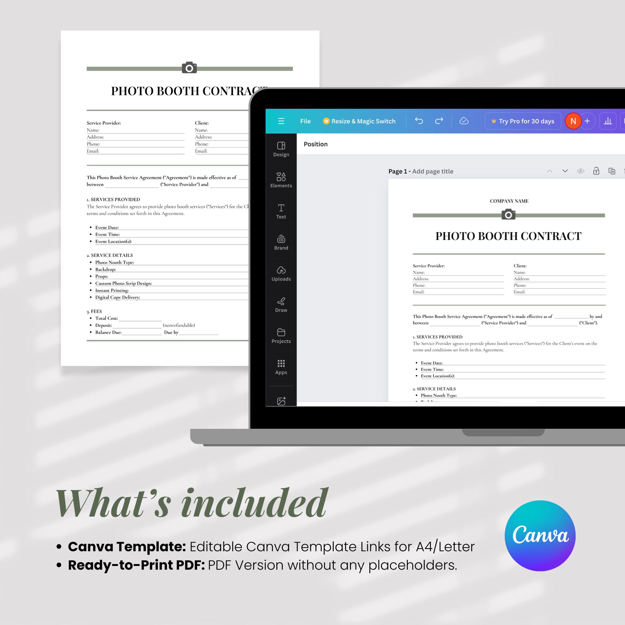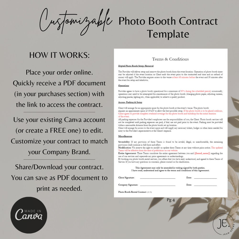 Photo Booth Contract Template Canva Editable Photobooth Rental