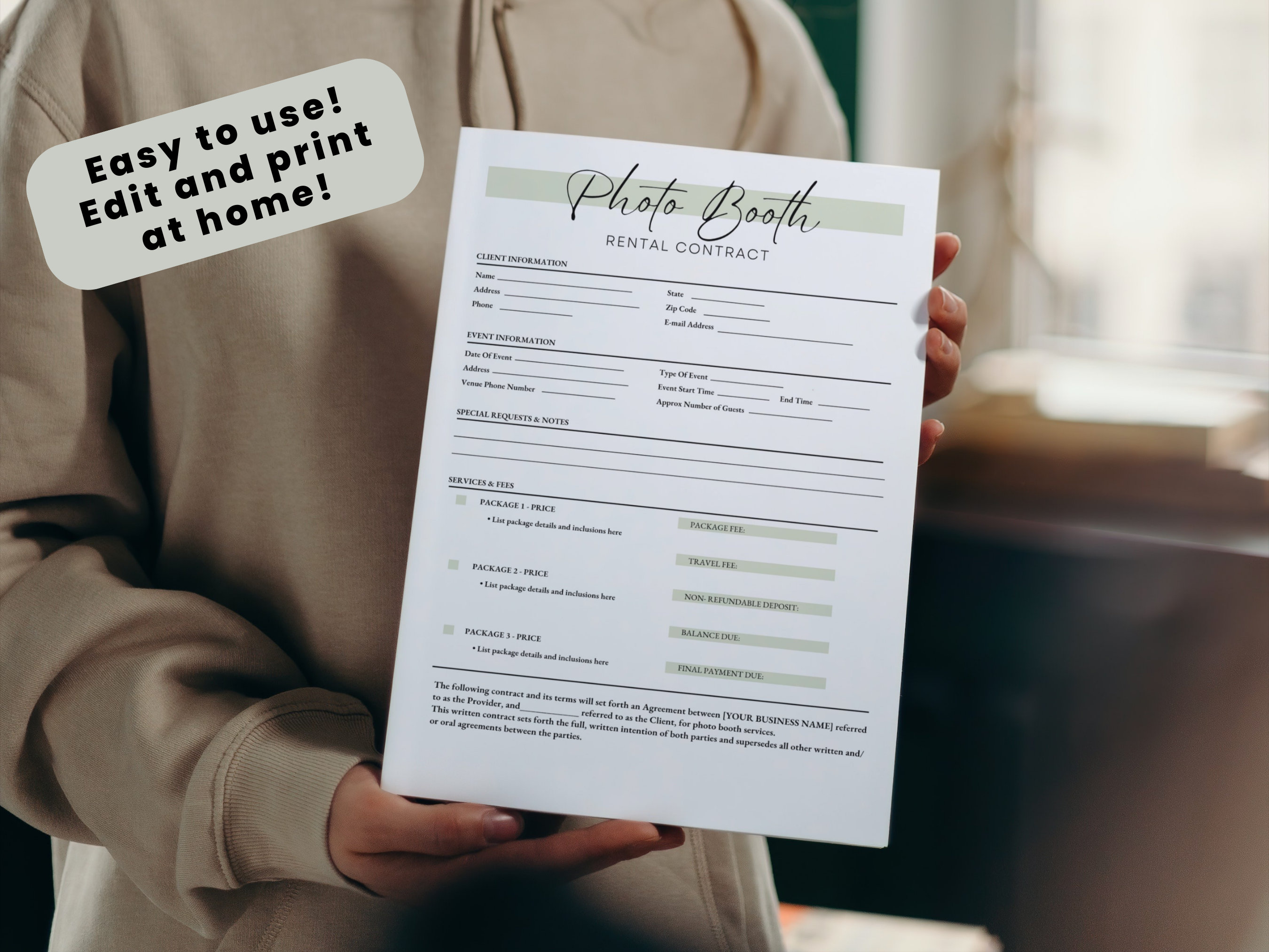 Editable Photo Booth Contract Template Customizable Rental Agreement