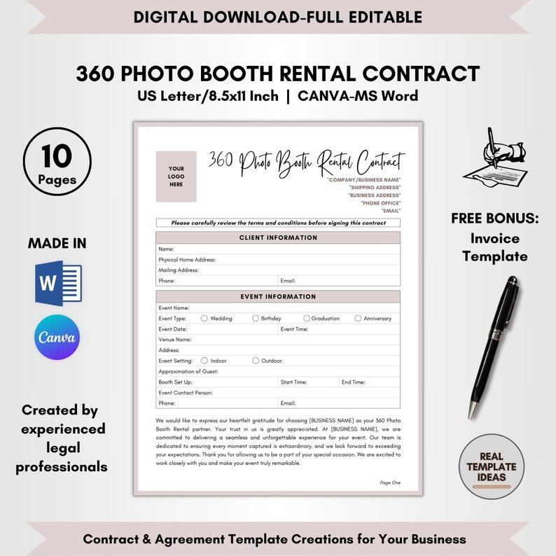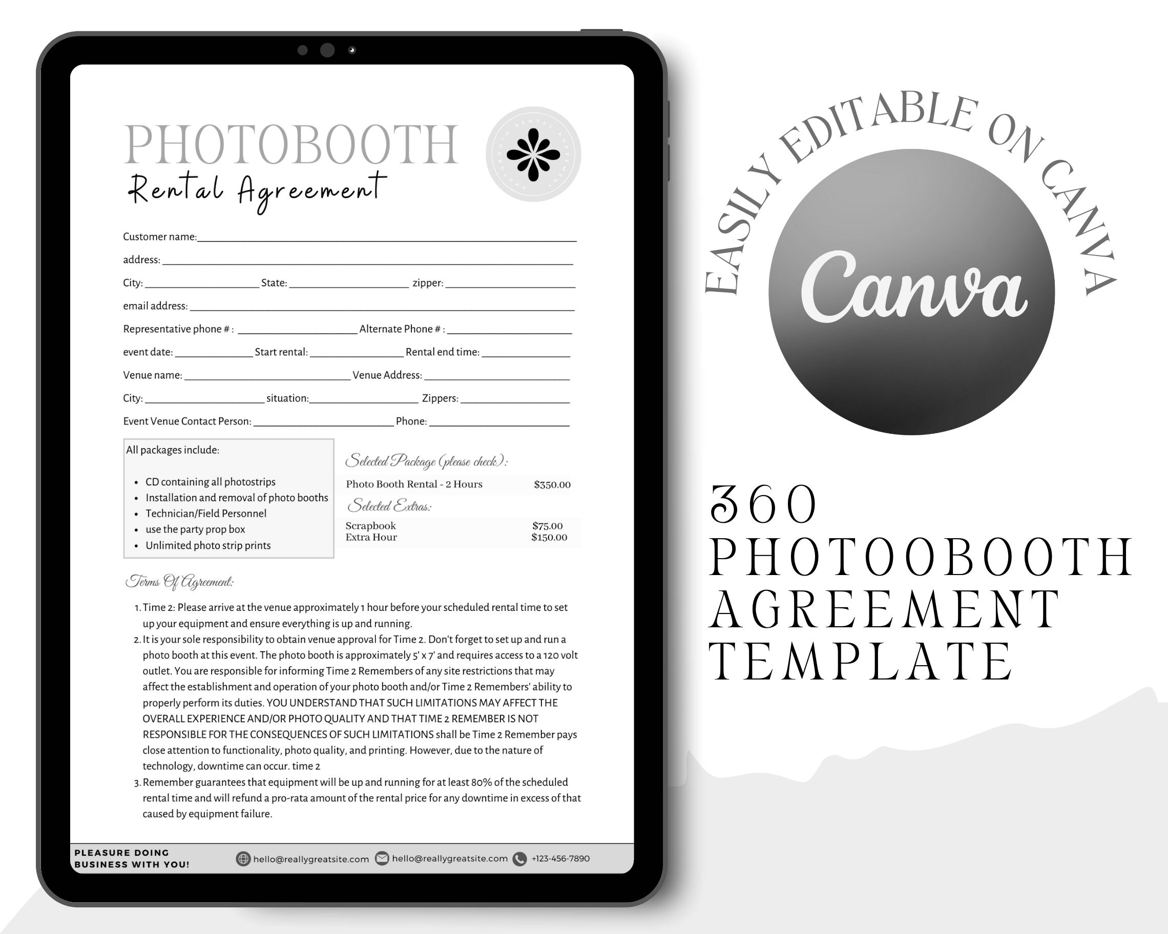 360 Photo Booth Rental Contract Template 10 Pages DIY Editable Pic