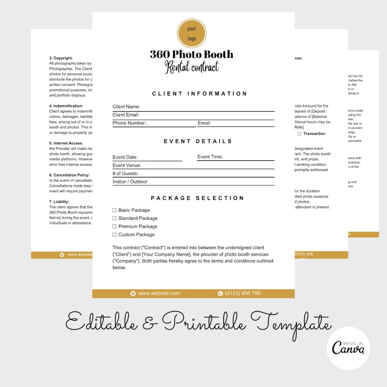 360 PHOTO BOOTH CONTRACT Template Bundle Photo Booth Contract Video
