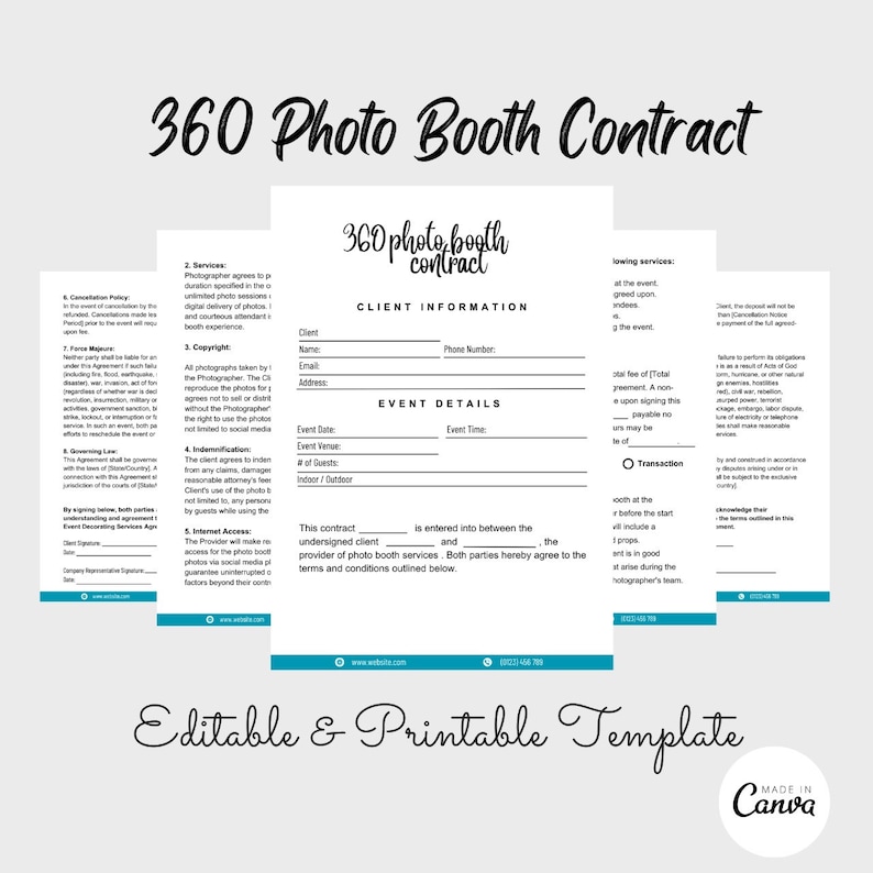 360 Photo Booth Contract Template Photo Booth Template Canva Contract