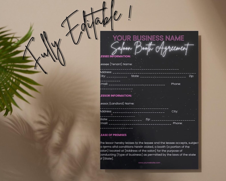 Salon Booth Rental Contract Template Customizable Salon Lease