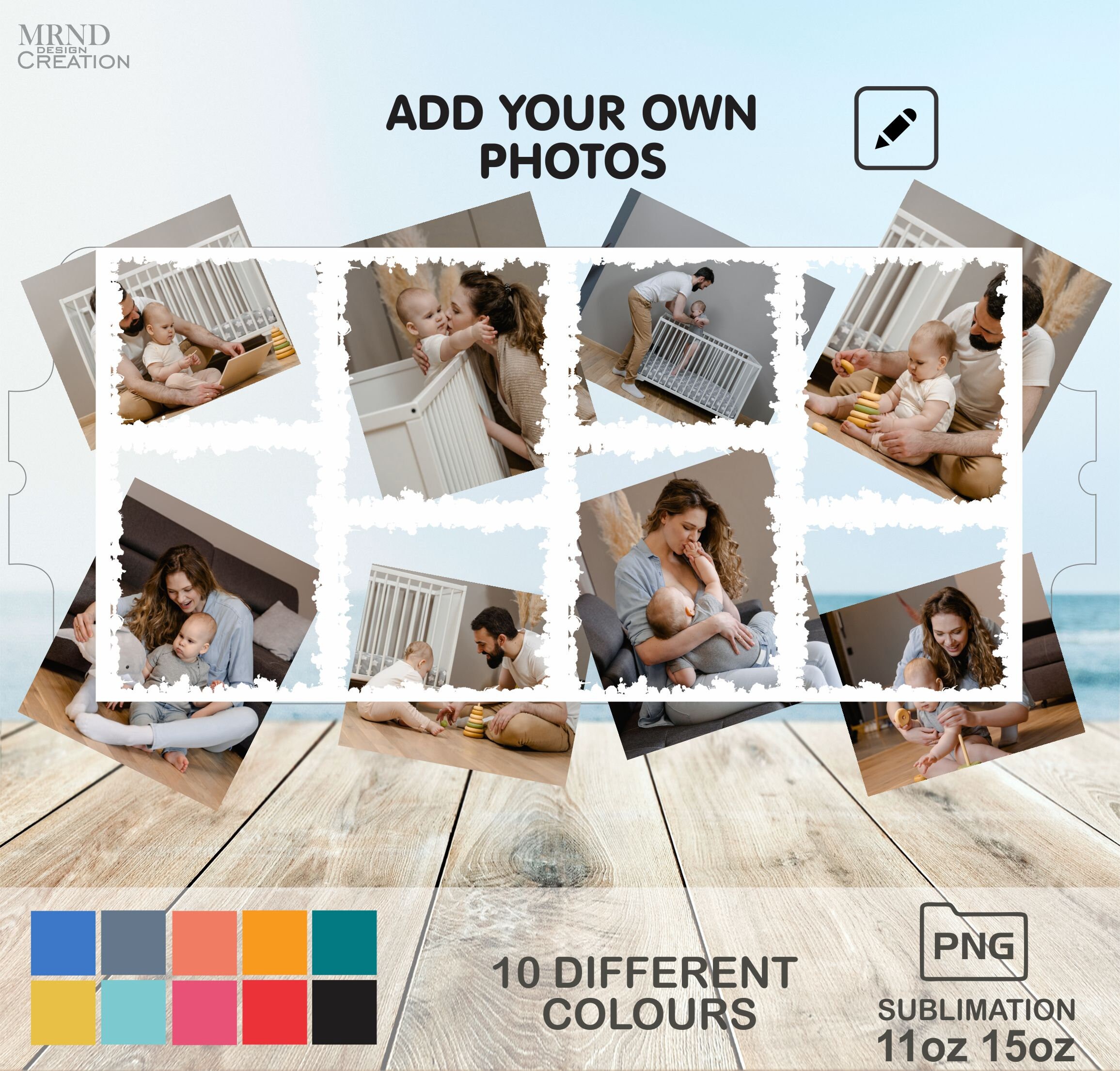 8 Photo Collage Mug Wrap PNG 11 Oz and 15 Oz Picture Mug Sublimation