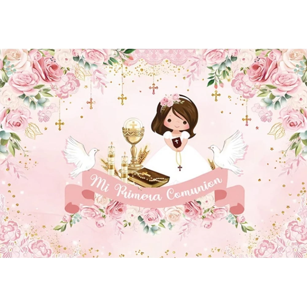 Boy Girl First Communion Photography Backdrop r Gold Cross Grail God