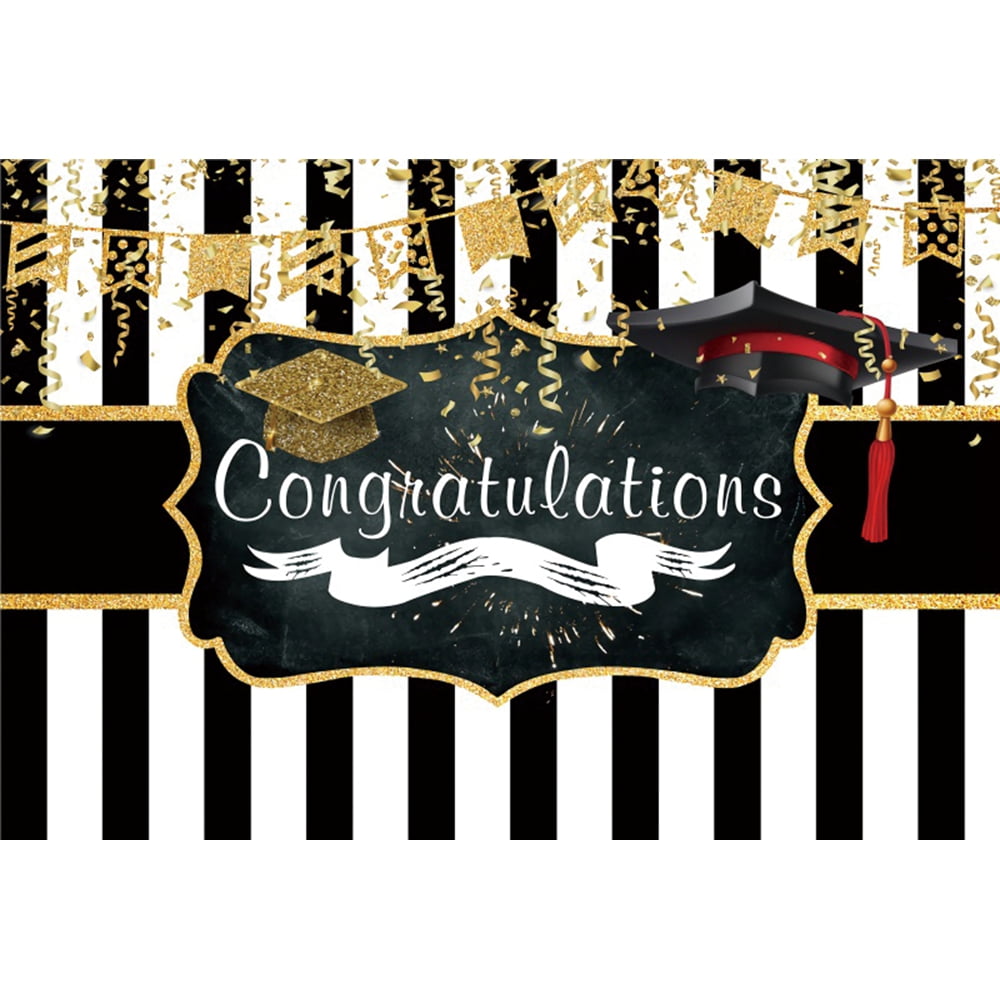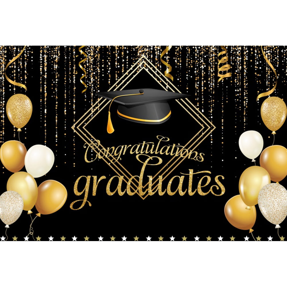 Graduation Photography Backdrop Gold Glitter Balloon Congrats Grad Prom
