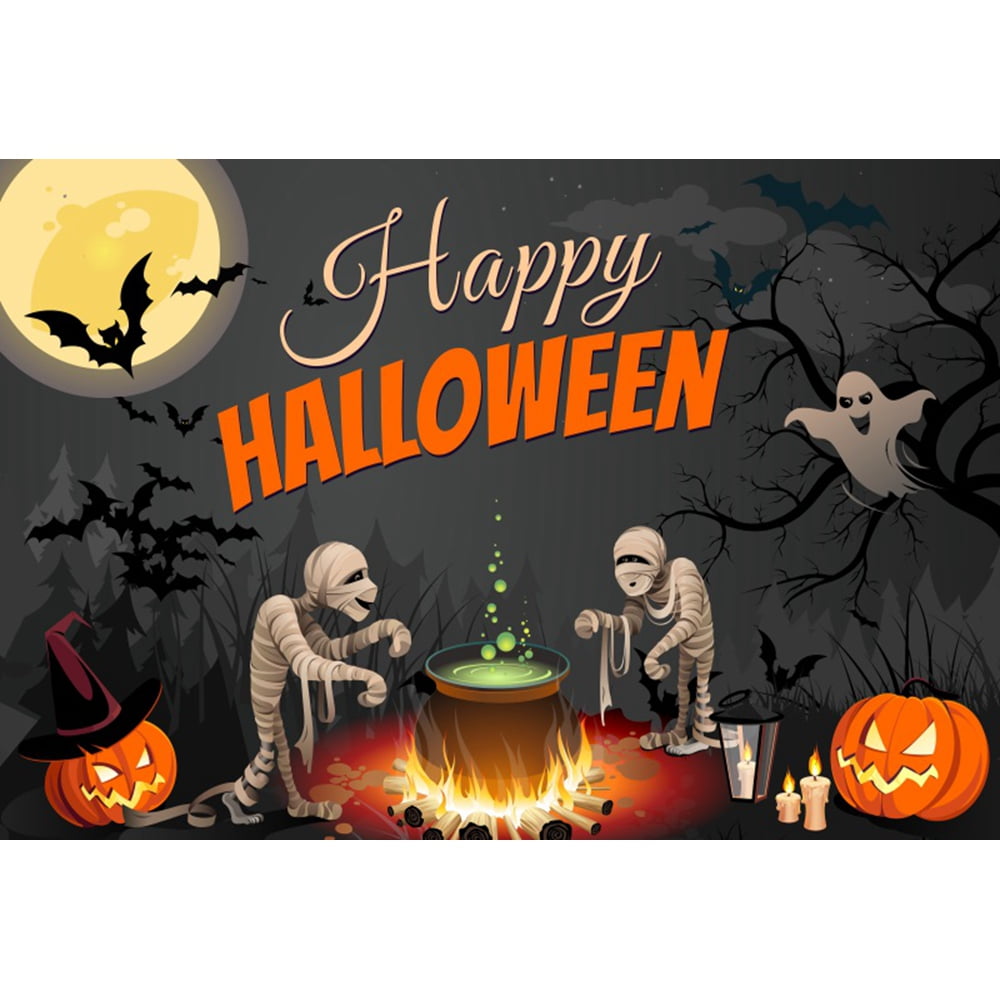 Happy Halloween Backdrop Horror Moon Pumpkin Witch Bat Castle Party r