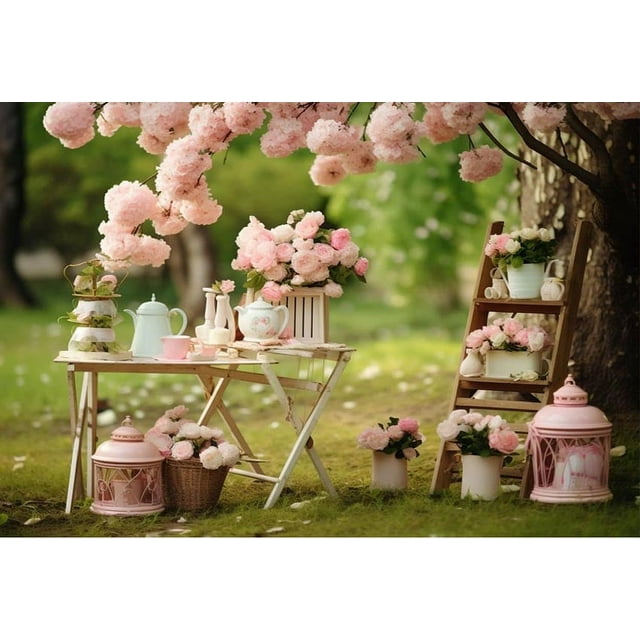 Photography Background Spring Tea Party Tree Baby Kids Birthday Party