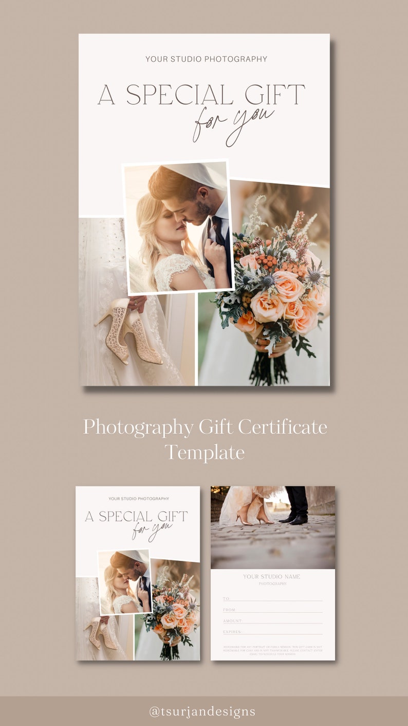 Wedding Photography Gift Certificate Template Editable Gift Card