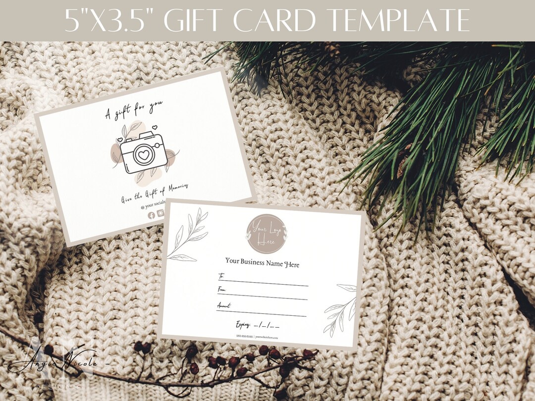 Editable and printable photography gift card template for canva Artofit
