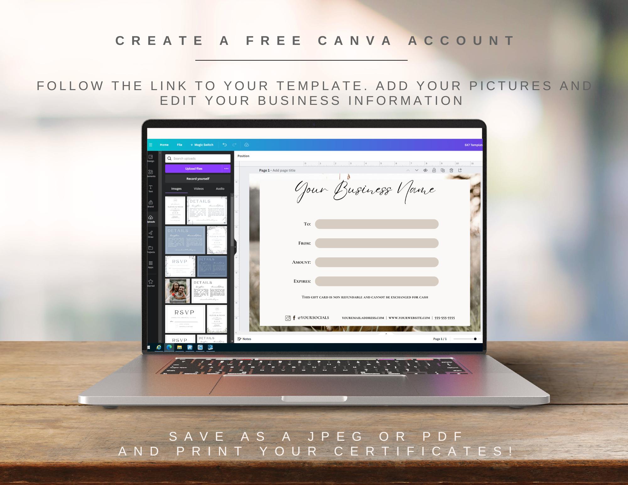 Photography Gift Certificate canva Template photography Gift Card