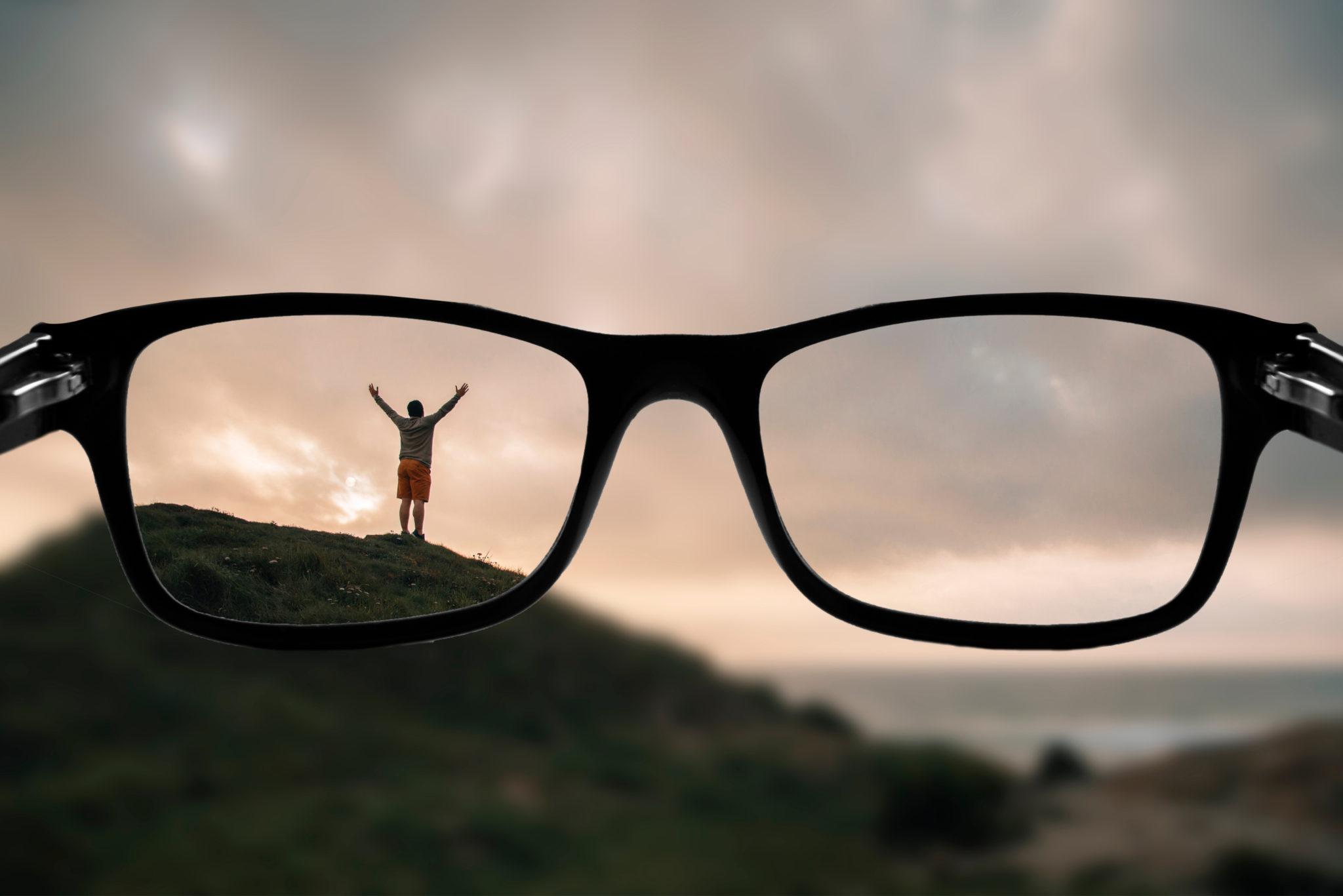 Premium Photo View on sky with clouds through glasses vision strategy