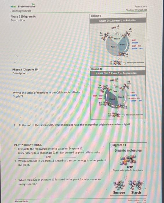 Solved Photosynthesis Animations Student Worksheet PART 8: Chegg com