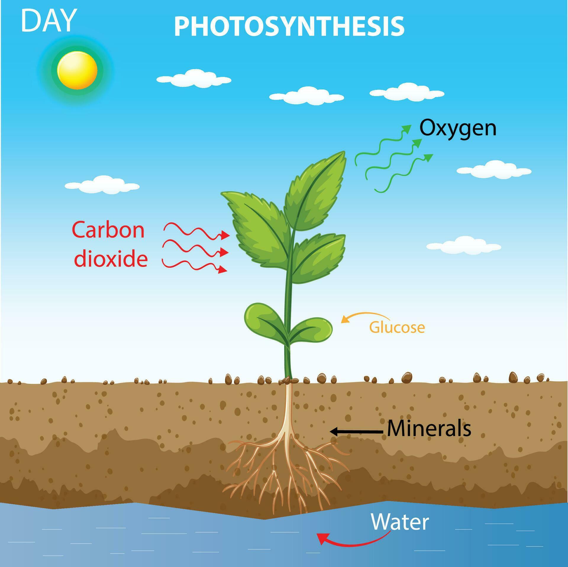 Diagram showing process of photosynthesis in plant 2062776 Vector Art