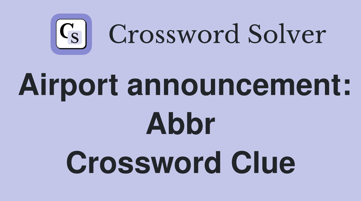 Airport announcement: Abbr Crossword Clue Answers Crossword Solver