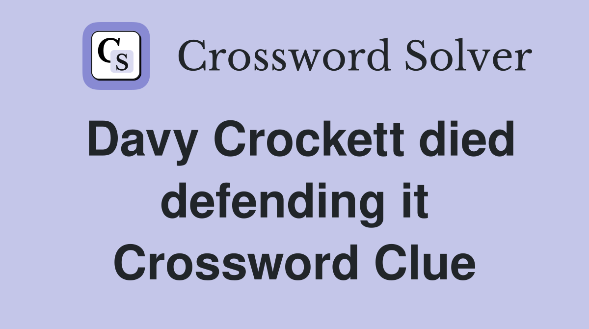 Davy Crockett died defending it Crossword Clue Answers Crossword Solver