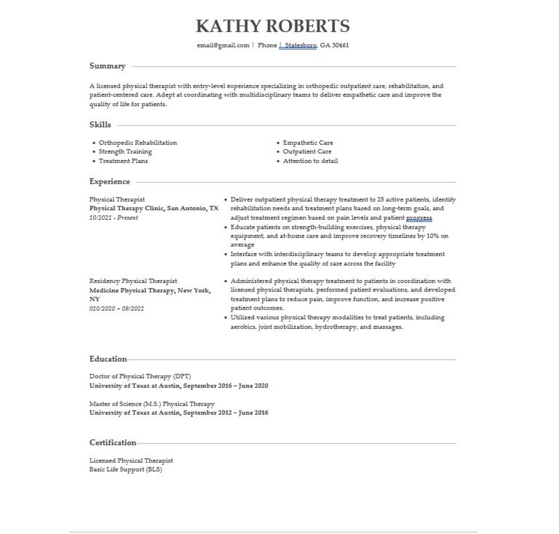 ATS Friendly Physical Therapist Resume Templates For 2023 Ready