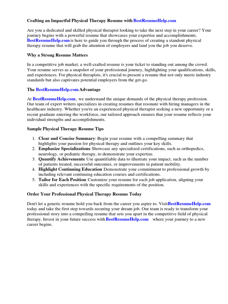 Sample Physical Therapy Resume Download Free PDF Physical Therapy