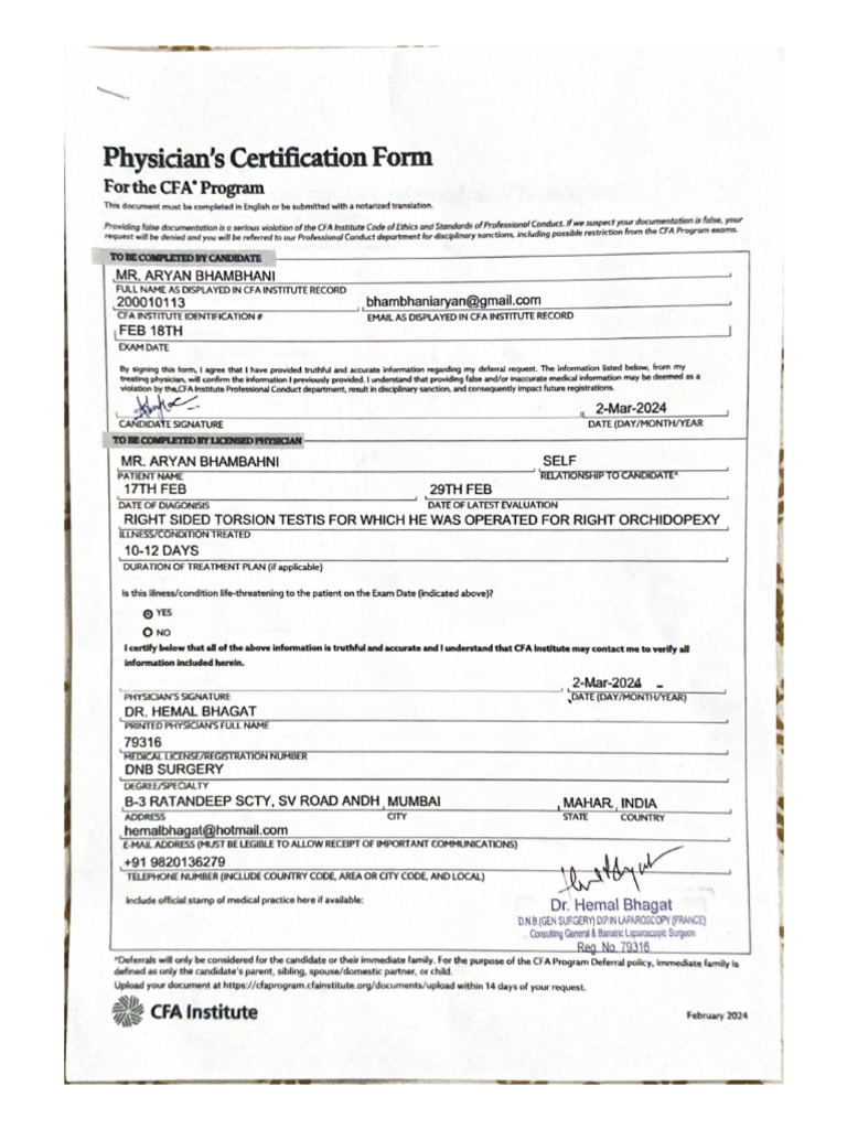 Physician Certification Form PDF Physician Infection