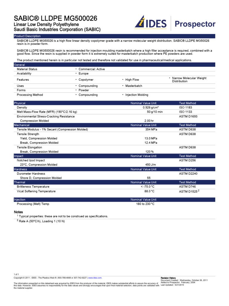 LLDPE Sabic MG500026 PDF Building Materials Materials