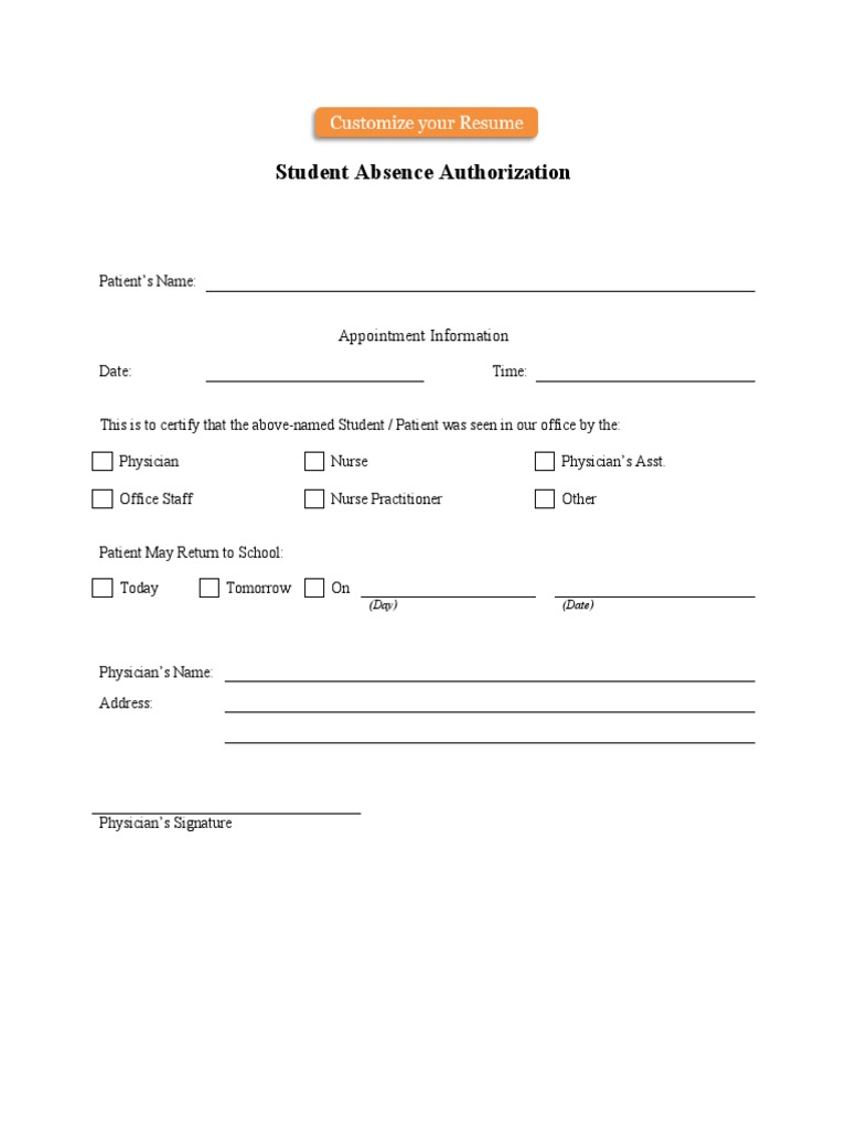 Doctors Note School Template PDF