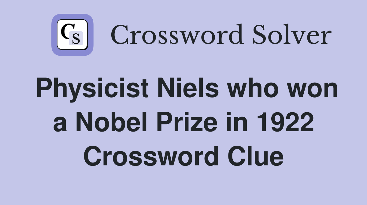 Physicist Niels who won a Nobel Prize in 1922 Crossword Clue Answers