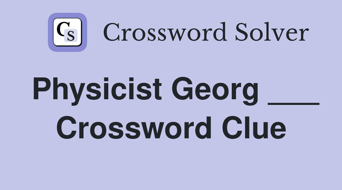 Physicist Georg Crossword Clue Answers Crossword Solver