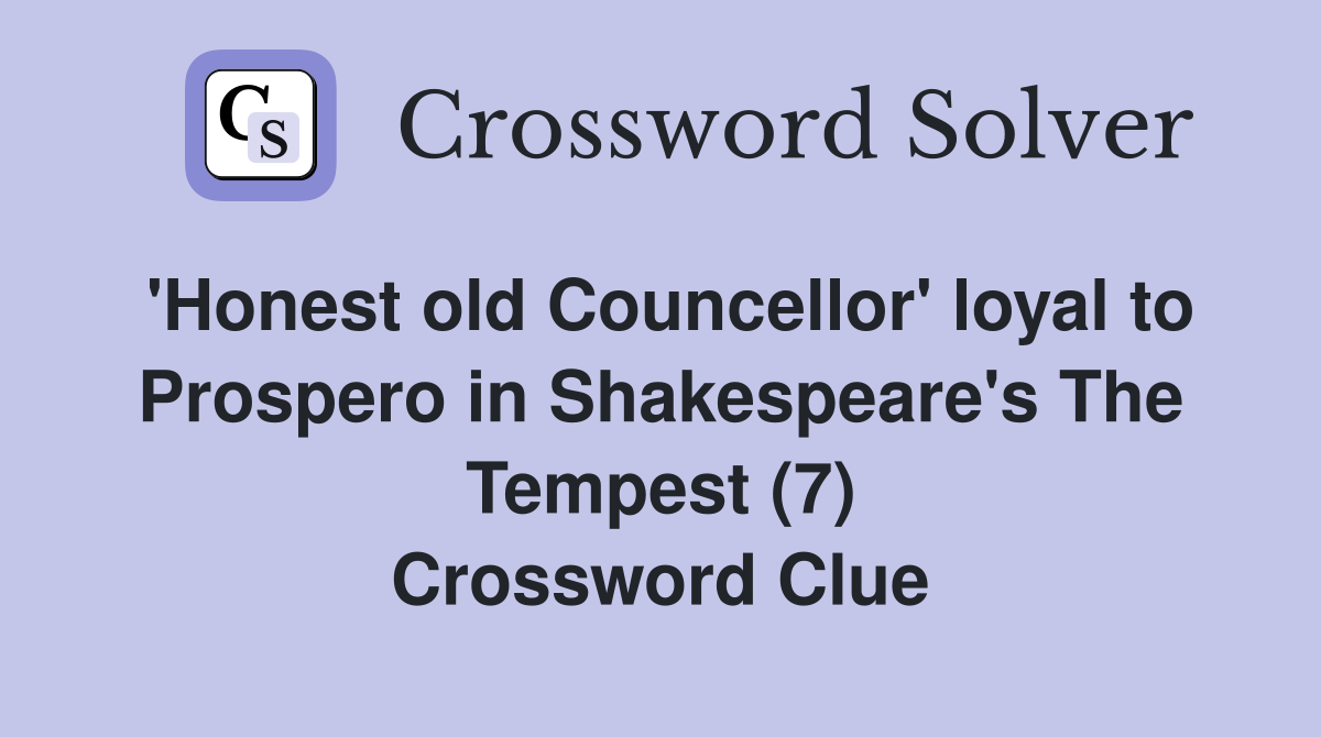 #39 Honest old Councellor #39 loyal to Prospero in Shakespeare #39 s The Tempest