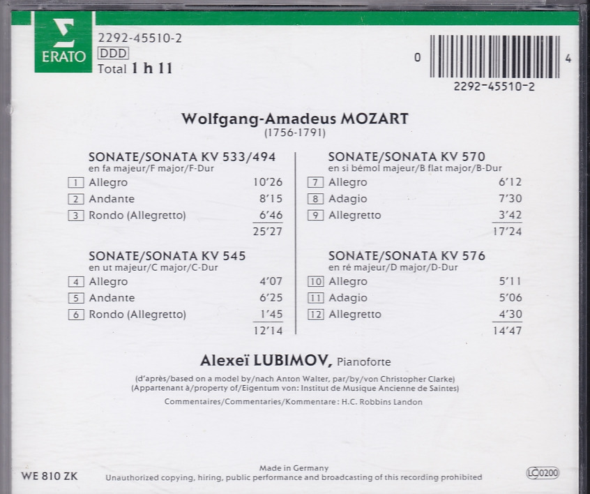 Mozart Piano Sonatas Rosen Fone Audiophile Label Photo #4083937 US
