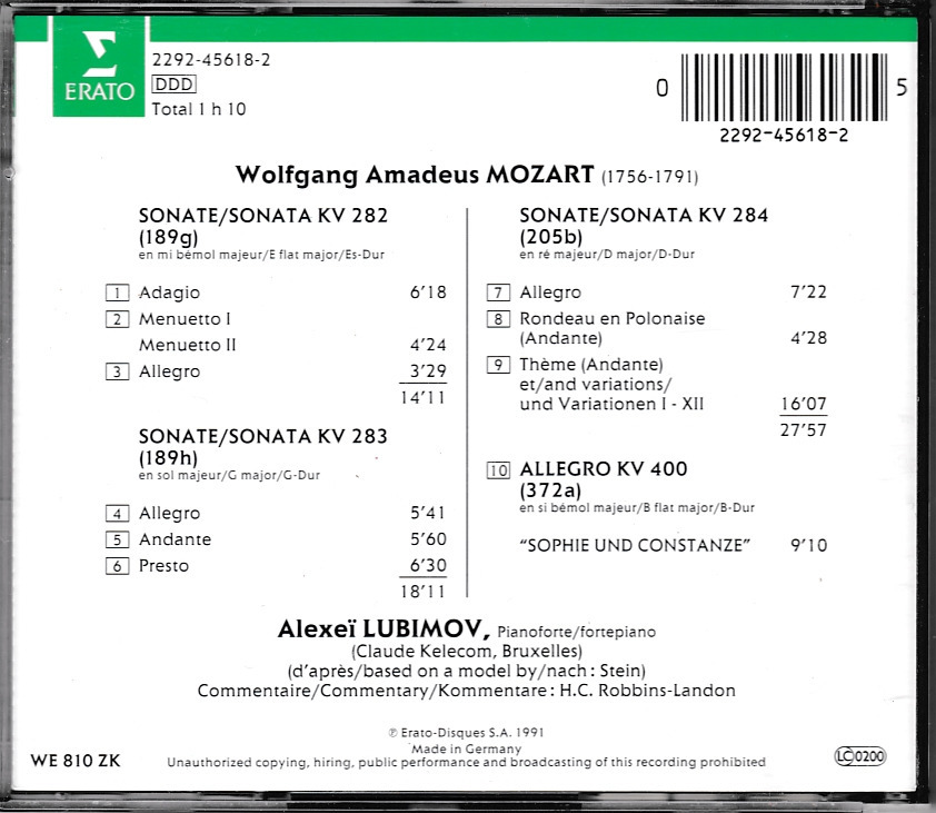 Mozart / Piano Sonatas KV 282 400 / A Lubimov Gdynia Kup teraz