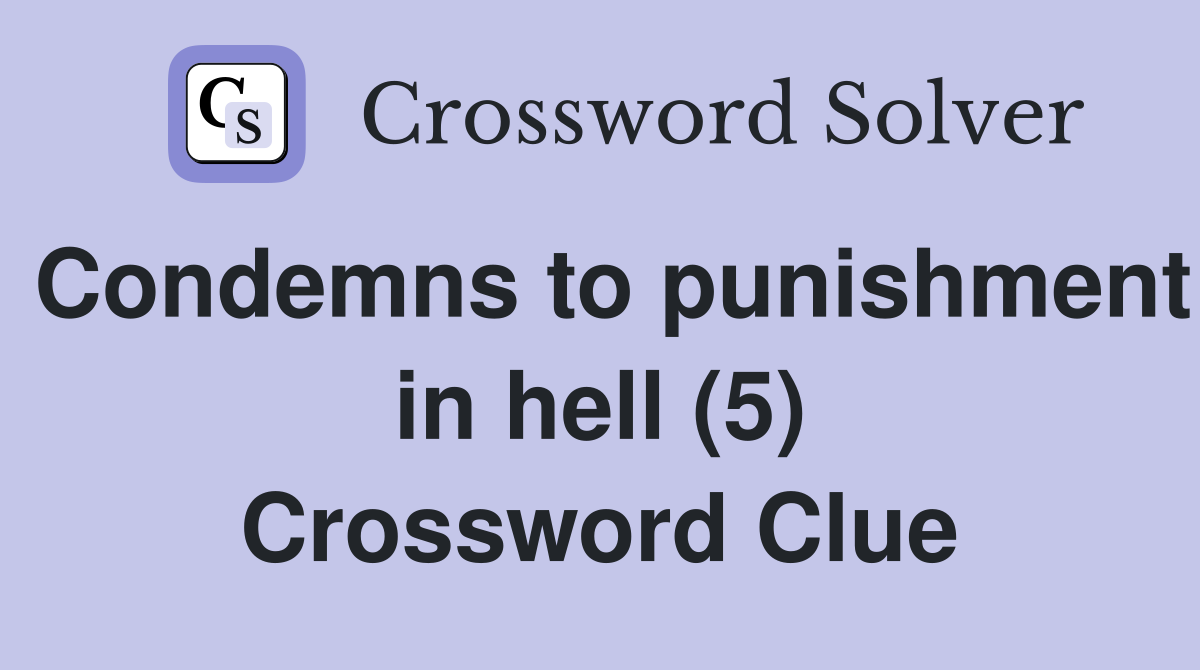 Condemns to punishment in hell (5) Crossword Clue Answers Crossword