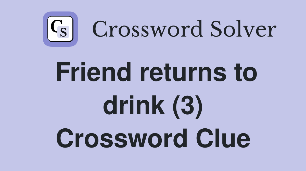 Friend returns to drink (3) Crossword Clue Answers Crossword Solver