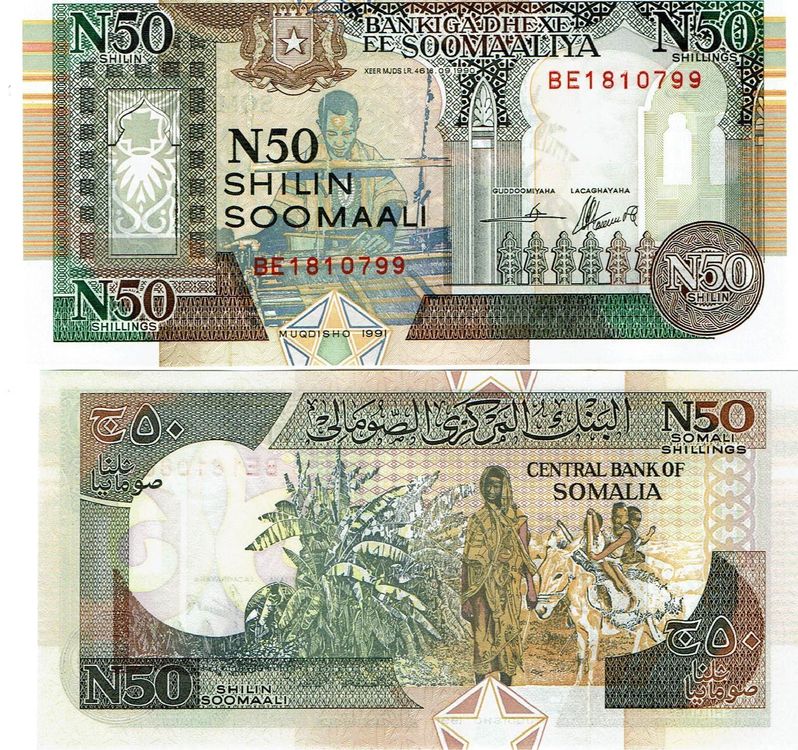 Somalia 50 Shilling UNZ 1991 Serie BE Pick R2/B314b (Neu (gemäss