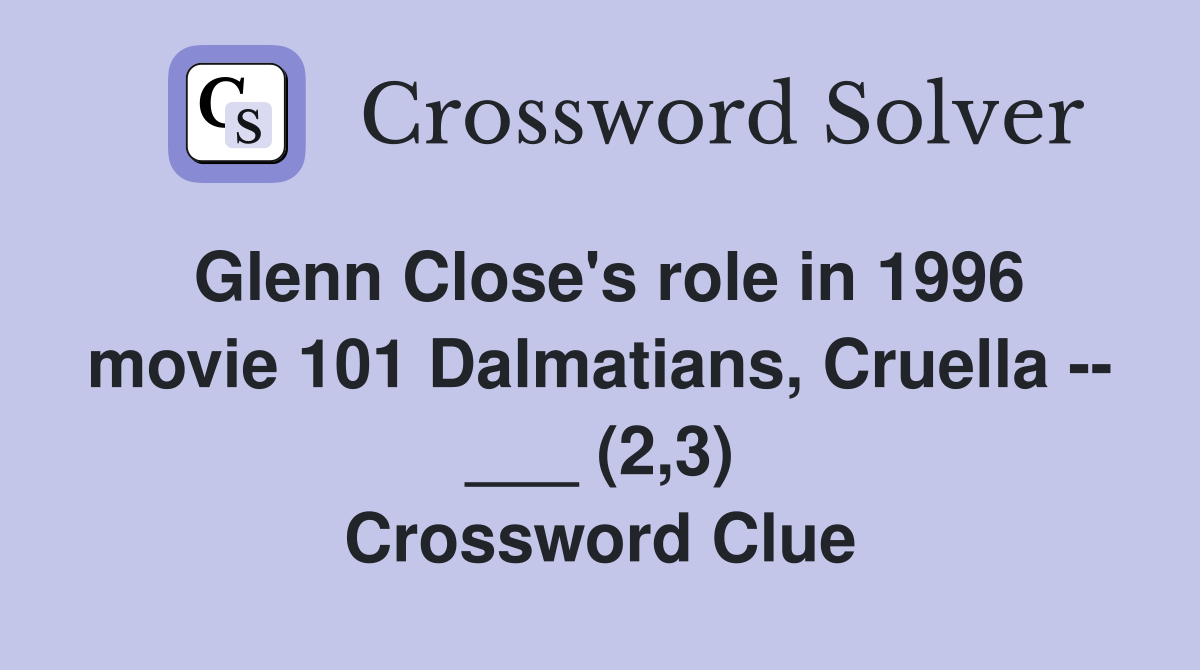 Glenn Close #39 s role in 1996 movie 101 Dalmatians Cruella (2 3