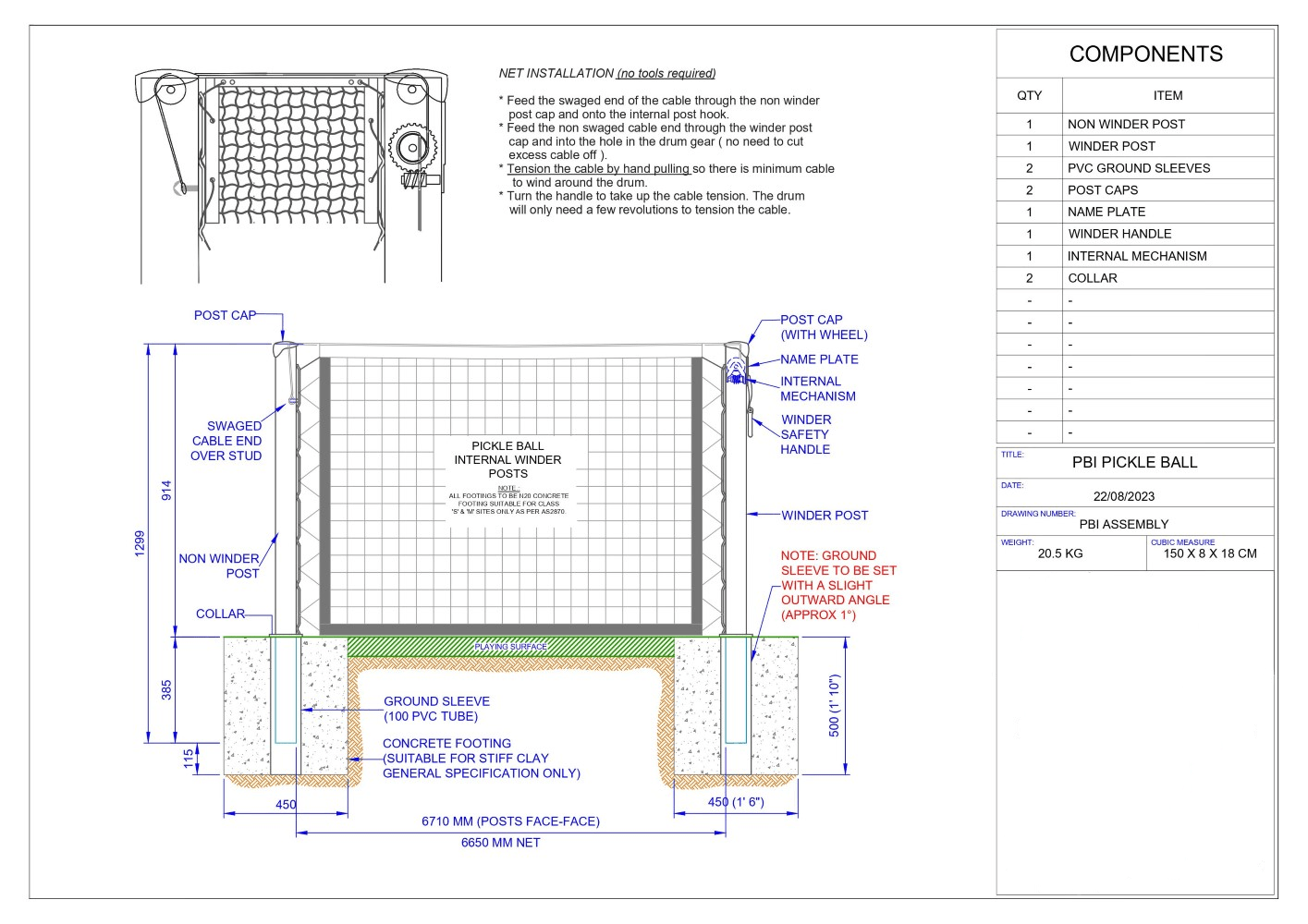 Pickleball Court Internal Winder Posts Tennis Warehouse Australia