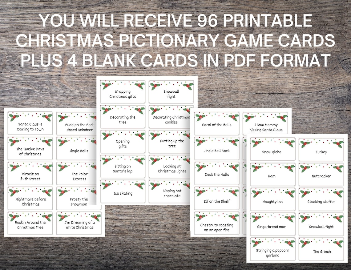 100 Christmas Pictionary Cards Printable Christmas Pictionary Etsy