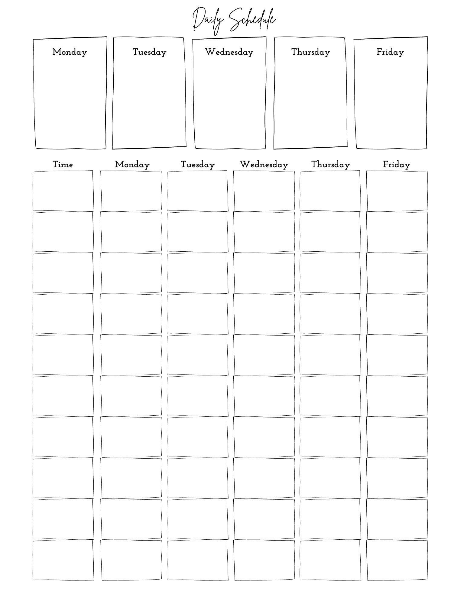 Daily Schedule Template JPG Etsy