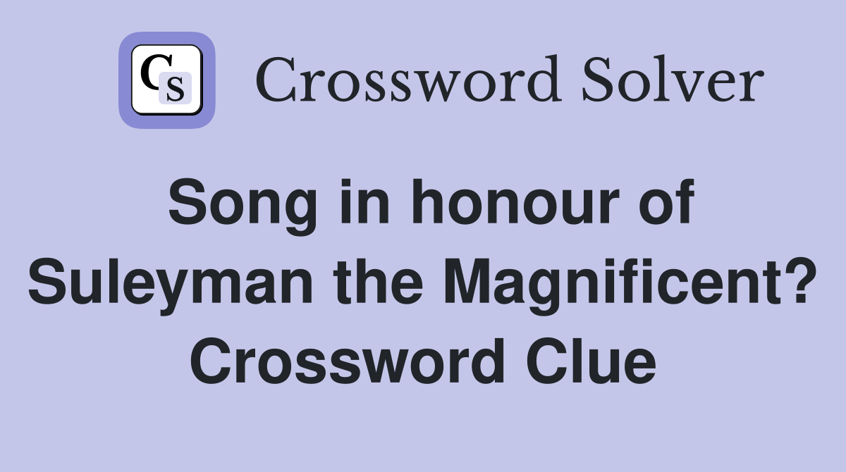 Song in honour of Suleyman the Magnificent? Crossword Clue Answers
