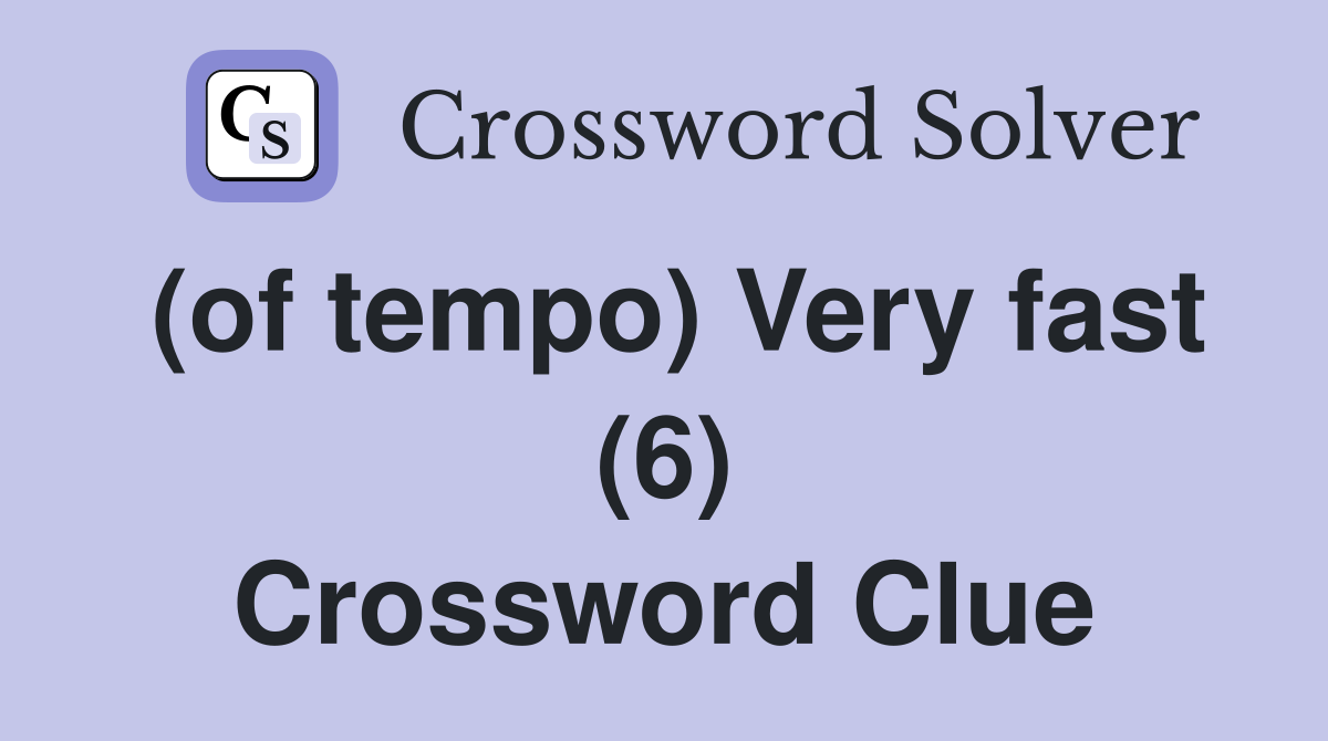 (of tempo) Very fast (6) Crossword Clue Answers Crossword Solver