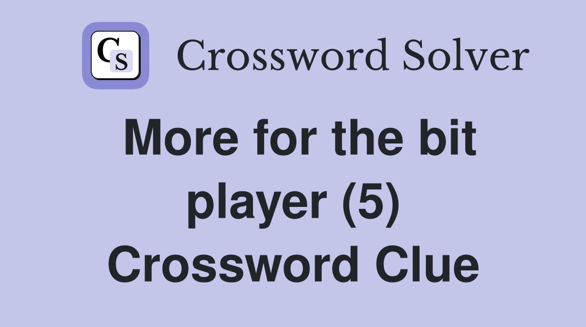 More for the bit player (5) Crossword Clue Answers Crossword Solver