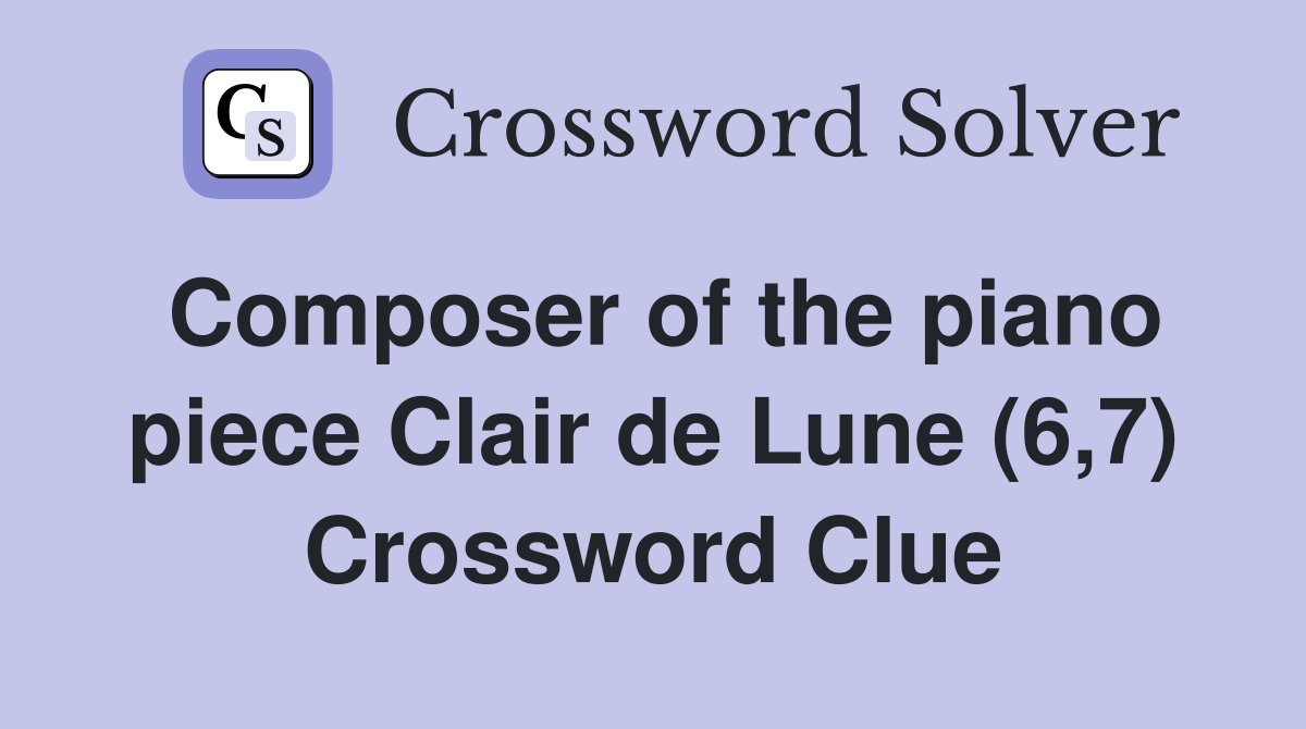 Composer of the piano piece Clair de Lune (6 7) Crossword Clue