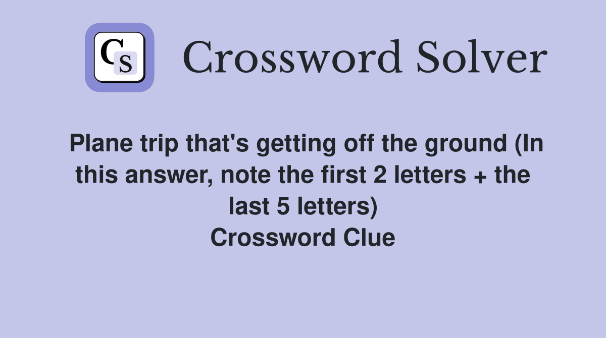 Plane trip that #39 s getting off the ground (In this answer note the