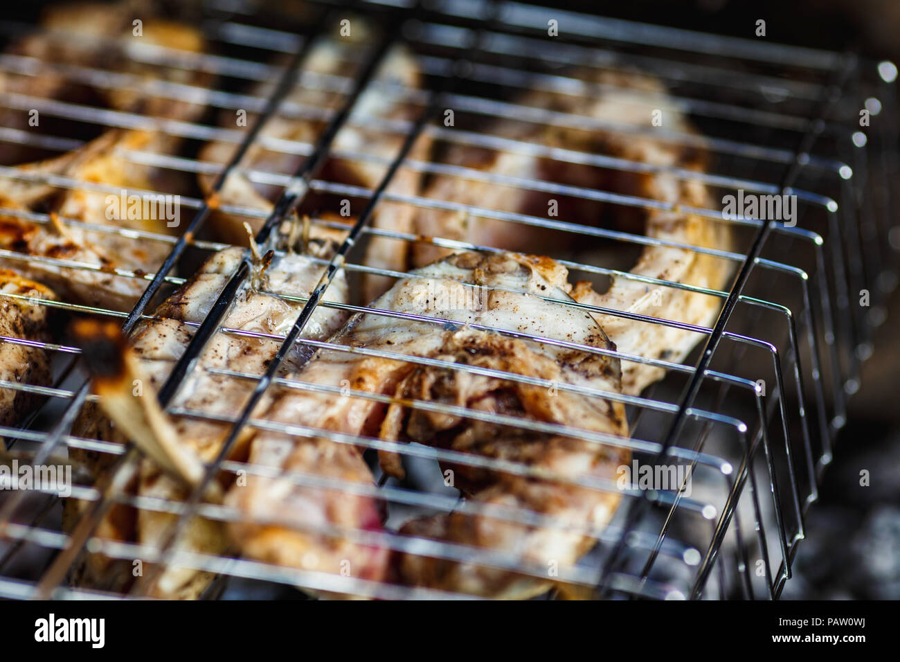Pieces fish on barbecue grill hi res stock photography and images Alamy