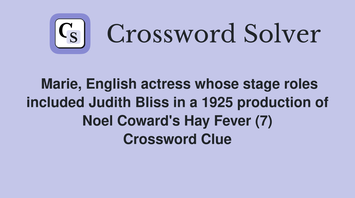 Marie English actress whose stage roles included Judith Bliss in a
