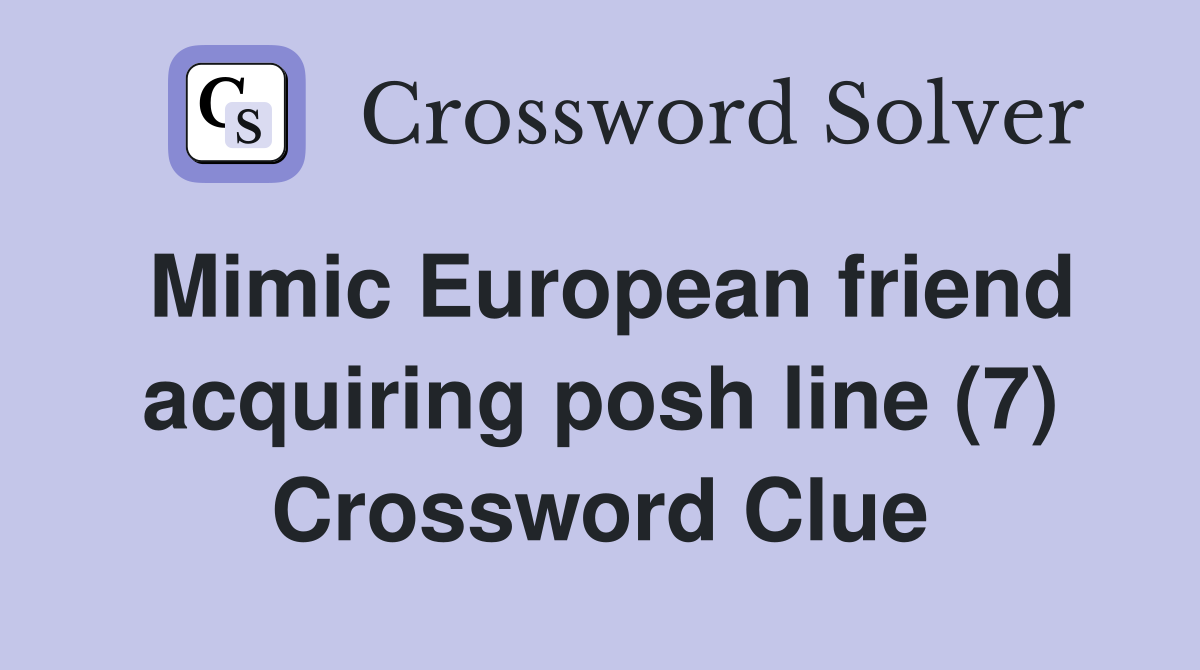 Mimic European friend acquiring posh line (7) Crossword Clue Answers