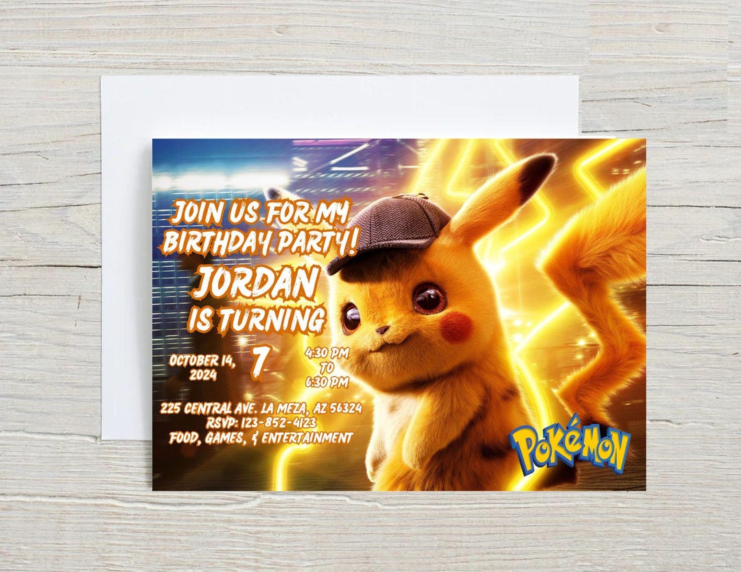 Pikachu Birthday Invitation Personalized Pikachu Digital Birthday