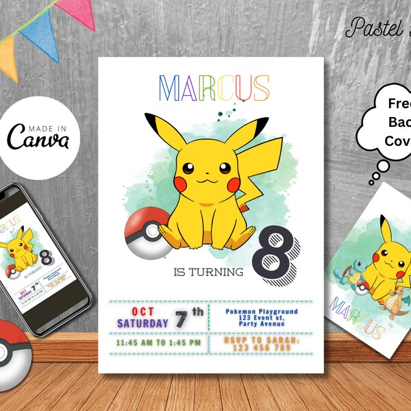 Editable Pikachu Birthday Invitation Digital Birthday Template