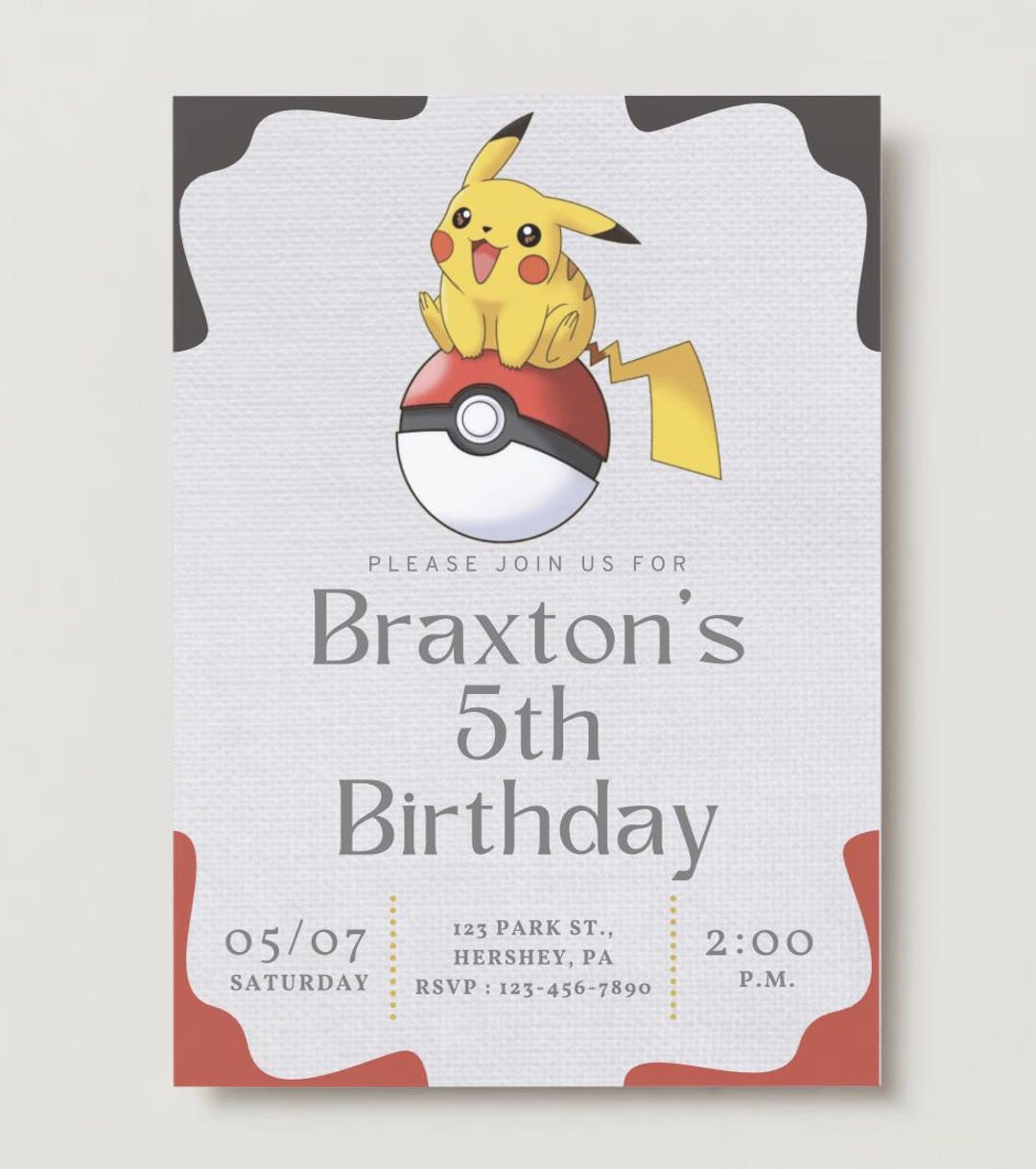 Pokemon Pikachu Birthday Invitation Template Digital Download Etsy