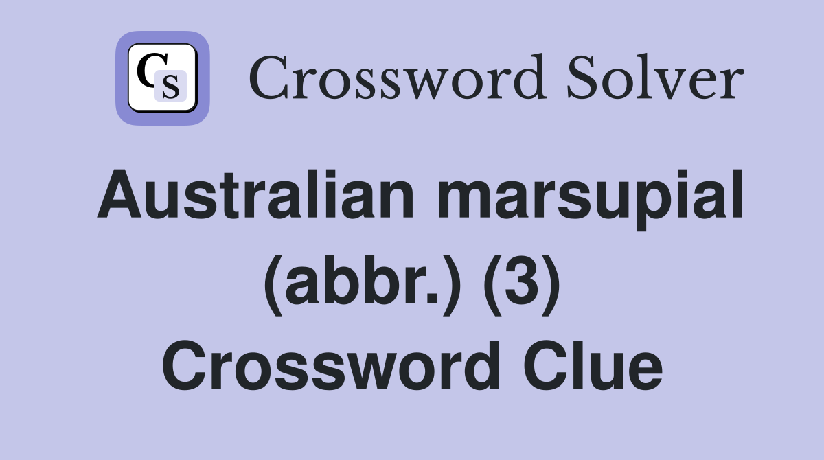 Australian marsupial (abbr ) (3) Crossword Clue Answers Crossword