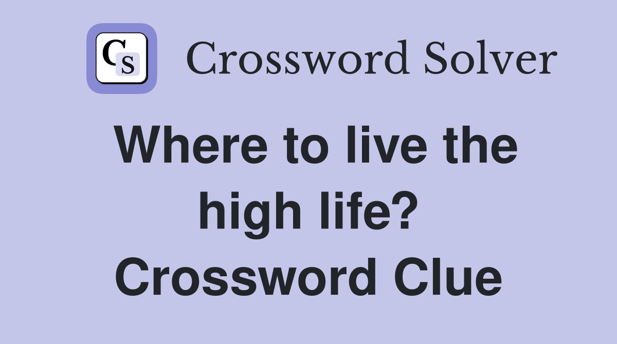 Where to live the high life? Crossword Clue Answers Crossword Solver